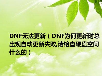相信目前很多小伙伴对于DNF为何更新时总出现自动更新失败,请检查硬盘空间什么的。都比较感兴趣,那么小编今天在网上也是收集了一些与DNF为
