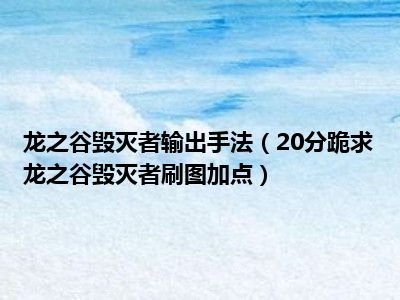 相信目前很多小伙伴对于20分跪求龙之谷毁灭者刷图加点都比较感兴趣,那么小编今天在网上也是收集了一些与20分跪求龙之谷毁灭者刷图加点相关的信息来分享给大家,希望能够帮助到大家哦。