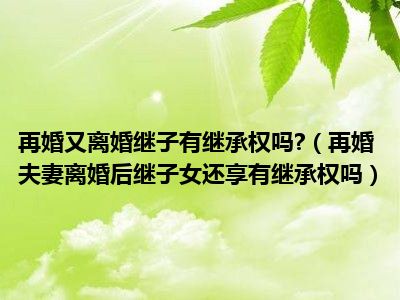 目前大家应该是对再婚夫妻离婚后继子女还享有继承权吗比较感兴趣的,所以今天CC就来为大家整理了一些关于再婚夫妻离婚后继子女还享有继承权吗方面的相关知识来分享给大家,希望大家会喜欢哦。