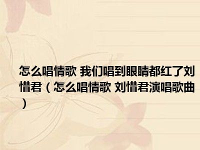 导读 目前是有很多朋友们对于怎么唱情歌 刘惜君演唱歌曲这个信息比较感兴趣,那么小编也是收集了一些怎么唱情歌 刘惜君演唱歌曲相关的信息来分