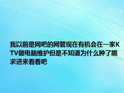 导读 相信目前很多小伙伴对于我以前是网吧的网管现在有个机会去一家KTV做电脑维护 不过我不知道肿么去做 跪求!!帮帮忙 进来看看吧都比较感兴...