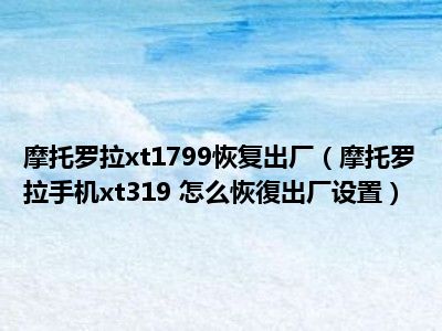 相信目前很多小伙伴对于摩托罗拉手机xt319 怎么恢復出厂设置都比较感兴趣,那么小编今天在网上也是收集了一些与摩托罗拉手机xt319 怎么恢復出厂设置相关的信息来分享给大家,希望能够帮助到大家哦。