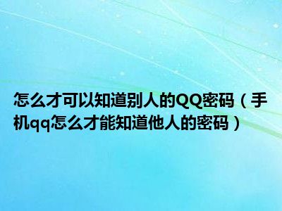 相信目前很多小伙伴对于手机qq怎么才能知道他人的密码都比较感兴趣,那么小编今天在网上也是收集了一些与手机qq怎么才能知道他人的密码相关的信息来分享给大家,希望能够帮助到大家哦。