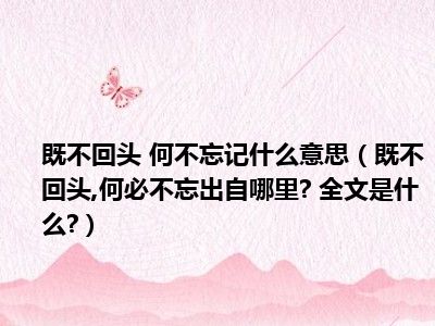 相信目前很多小伙伴对于“既不回头,何必不忘”出自哪里? 全文是什么?都比较感兴趣,那么小编今天在网上也是收集了一些与“既不回头,何必不忘”出自哪里? 全文是什么?相关的信息来分享给大家,希望能够帮助到大家哦。