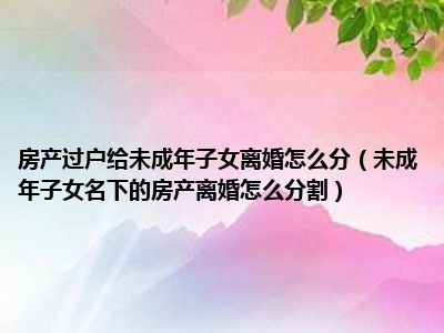 目前大家应该是对未成年子女名下的房产离婚怎么分割比较感兴趣的,所以今天CC就来为大家整理了一些关于未成年子女名下的房产离婚怎么分割方面的相关知识来分享给大家,希望大家会喜欢哦。