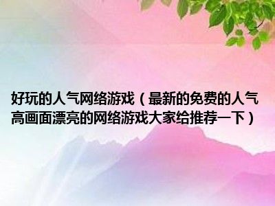 导读相信目前很多小伙伴对于最新的免费的人气高画面漂亮的网络游戏大家给推荐一下都比较感兴趣,那么小编今天在网上也是收集了一些与最新的免...