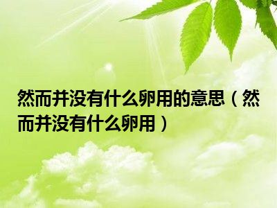 导读 目前是有很多朋友们对于然而并没有什么卵用这个信息比较感兴趣,那么小编也是收集了一些然而并没有什么卵用相关的信息来分享给大家,希望你