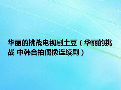 导读 目前是有很多朋友们对于华丽的挑战 中韩合拍偶像连续剧这个信息比较感兴趣,那么小编也是收集了一些华丽的挑战 中韩合拍偶像连续剧相关的