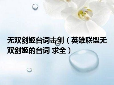 目前应该是有很多小伙伴对于英雄联盟无双剑姬的台词 求全方面的信息比较感兴趣,现在小编就收集了一些与英雄联盟无双剑姬的台词 求全相关的信息来分享给大家,感兴趣的小伙伴可以接着往下看,希望会帮助到你哦。
