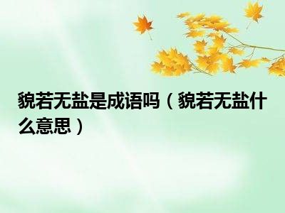 目前应该是有很多小伙伴对于貌若无盐什么意思方面的信息比较感兴趣,现在小编就收集了一些与貌若无盐什么意思相关的信息来分享给大家,感兴趣的小伙伴可以接着往下看,希望会帮助到你哦。