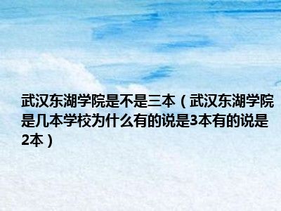 目前应该是有很多小伙伴对于武汉东湖学院是几本学校为什么有的说是3本有的说是2本方面的信息比较感兴趣,现在小编就收集了一些与武汉东湖学院是几本学校为什么有的说是3本有的说是2本相关的信息来分享给大家,感兴趣的小伙伴可以接着往下看,希望会帮助到你哦。