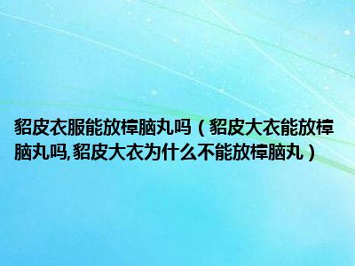 目前大家应该是对貂皮大衣能放樟脑丸吗,貂皮大衣为什么不能放樟脑丸比较感兴趣的,所以今天小编CC就来为大家整理了一些关于貂皮大衣能放樟脑丸吗,貂皮大衣为什么不能放樟脑丸方面的相关知识来分享给大家,希望大家会喜欢哦。