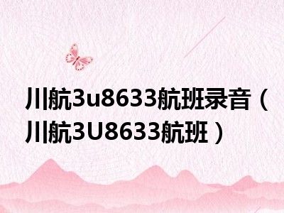 导读 相信目前很多小伙伴对于川航3U8633航班都比较感兴趣,那么小搜今天在网上也是收集了一些与川航3U8633航班相关的信息来分享给大家,希望能够