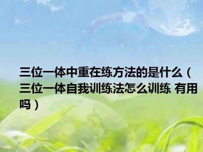 目前应该是有很多小伙伴对于三位一体自我训练法怎么训练 有用吗方面的信息比较感兴趣,现在小编就收集了一些与三位一体自我训练法怎么训练 有用吗相关的信息来分享给大家,感兴趣的小伙伴可以接着往下看,希望会帮助到你哦。