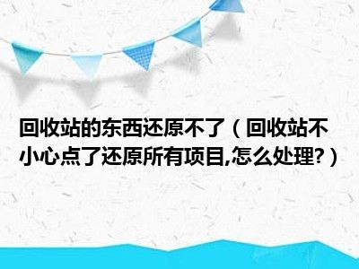 相信目前很多小伙伴对于回收站不小心点了还原所有项目,怎么处理?都比较感兴趣,那么小编今天在网上也是收集了一些与回收站不小心点了还原所有项目,怎么处理?相关的信息来分享给大家,希望能够帮助到大家哦。