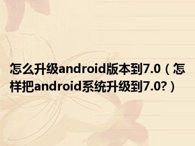 相信目前很多小伙伴对于怎样把android系统升级到7.0?都比较感兴趣,那么小编今天在网上也是收集了一些与怎样把android系统升级到7.0?相关的信息来分享给大家,希望能够帮助到大家哦。