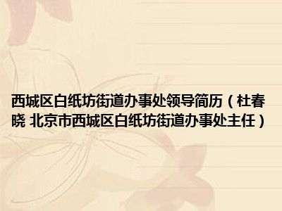 导读 目前是有很多朋友们对于杜春晓 北京市西城区白纸坊街道办事处主任这个信息比较感兴趣,那么小编也是收集了一些杜春晓 北京市西城区白纸坊