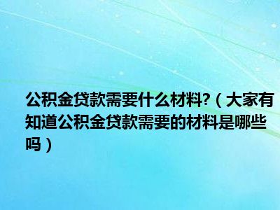 新房公积金贷款所需材料:借款人及参贷人(共同还款人、担保人)的居民身份证、户口簿原件及复印件和共同还款承诺书。 婚姻状况证明(已婚的提供结婚证复印件,其他情况由所在单位或派出所出具证明)。合法的商品房购房合同或协议。借款人及参贷人所在单位提供的个人资信证明。借款人已交付不低于30%购房款的有效凭据。有效的担保证明。办理住房公积金贷款的期房楼盘,必须是由开发商与受委托银行签订按揭协议的楼盘,借款人可通过按揭银行办理贷款手续。二手房公积金贷款所需材料:卖方身份证、户口簿复印件。房产证原件和复印件。公积金管理中心认可的评估机构出具的评估报告。公积金管理中心认可的中介机构与买卖双方签订的三方协议。区级以上房产交易部门进行抵押登记。公积金贷款指缴存住房公积金的职工享受的贷款,国家规定,凡是缴存公积金的职工均可按公积金贷款的相关规定申请公积金贷款。在本市城镇购买,建造、翻建、大修自住住房时,以其所拥有的产权住房为抵押物并作为偿还贷款的保证,即可向银行申请住房公积金贷款。公积金贷款利率:五年以下(含5年)贷款 75% 五年以上贷款 25%