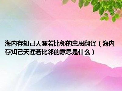 相信目前很多小伙伴对于海内存知己天涯若比邻的意思是什么都比较感兴趣,那么小编今天在网上也是收集了一些与海内存知己天涯若比邻的意思是什么相关的信息来分享给大家,希望能够帮助到大家哦。