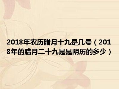 目前应该是有很多小伙伴对于2018年的腊月二十九是是阴历的多少方面的信息比较感兴趣,现在小编就收集了一些与2018年的腊月二十九是是阴历的多少相关的信息来分享给大家,感兴趣的小伙伴可以接着往下看,希望会帮助到你哦。