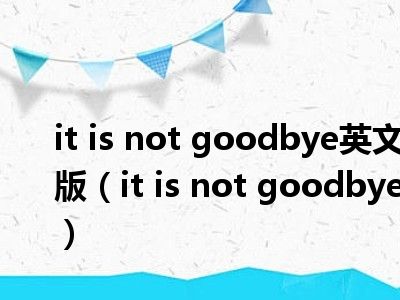 导读 目前是有很多朋友们对于it is not goodbye这个信息比较感兴趣,那么小编也是收集了一些it is not goodbye相关的信息来分享给大家,希