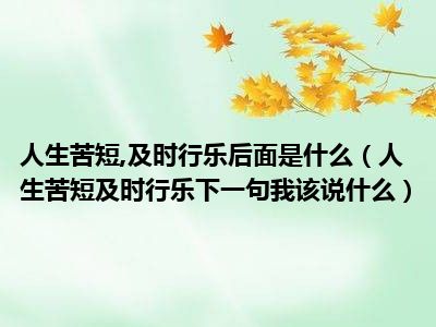 目前应该是有很多小伙伴对于人生苦短及时行乐下一句我该说什么方面的信息比较感兴趣,现在小编就收集了一些与人生苦短及时行乐下一句我该说什么相关的信息来分享给大家,感兴趣的小伙伴可以接着往下看,希望会帮助到你哦。