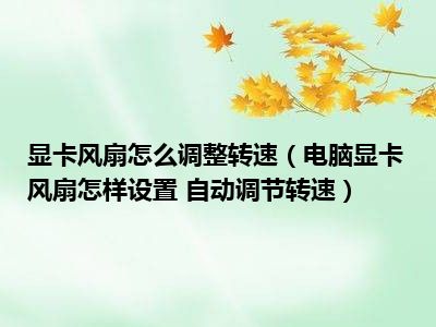 相信目前很多小伙伴对于电脑显卡风扇怎样设置 自动调节转速都比较感兴趣,那么小编今天在网上也是收集了一些与电脑显卡风扇怎样设置 自动调节转速相关的信息来分享给大家,希望能够帮助到大家哦。
