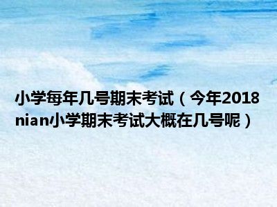 目前应该是有很多小伙伴对于今年2018nian小学期末考试大概在几号呢方面的信息比较感兴趣,现在小编就收集了一些与今年2018nian小学期末考试大概在几号呢相关的信息来分享给大家,感兴趣的小伙伴可以接着往下看,希望会帮助到你哦。