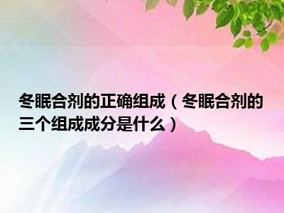 目前应该是有很多小伙伴对于冬眠合剂的三个组成成分是什么方面的信息比较感兴趣,现在小编就收集了一些与冬眠合剂的三个组成成分是什么相关的信息来分享给大家,感兴趣的小伙伴可以接着往下看,希望会帮助到你哦。