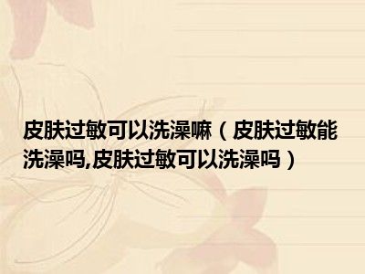 目前大家应该是对皮肤过敏能洗澡吗,皮肤过敏可以洗澡吗比较感兴趣的,所以今天小编CC就来为大家整理了一些关于皮肤过敏能洗澡吗,皮肤过敏可以洗澡吗方面的相关知识来分享给大家,希望大家会喜欢哦。