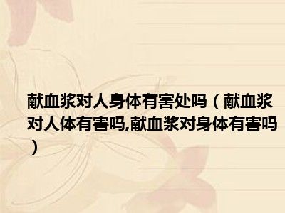 目前大家应该是对献血浆对人体有害吗,献血浆对身体有害吗比较感兴趣的,所以今天小编CC就来为大家整理了一些关于献血浆对人体有害吗,献血浆对身体有害吗方面的相关知识来分享给大家,希望大家会喜欢哦。