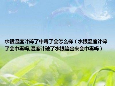目前大家应该是对水银温度计碎了会中毒吗,温度计破了水银流出来会中毒吗比较感兴趣的,所以今天小编CC就来为大家整理了一些关于水银温度计碎了会中毒吗,温度计破了水银流出来会中毒吗方面的相关知识来分享给大家,希望大家会喜欢哦。