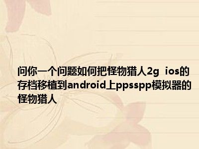 相信目前很多小伙伴对于问大家一问题怪物猎人2g ios上的存档怎么移植到android上去ppsspp模拟器的怪物猎人都比较感兴趣,那么小编今天在网上也是收集了一些与问大家一问题怪物猎人2g ios上的存档怎么移植到android上去ppsspp模拟器的怪物猎人相关的信息来分享给大家,希望能够帮助到大家哦。