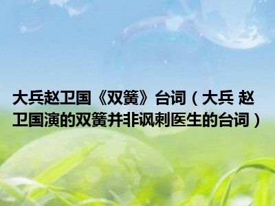 目前应该是有很多小伙伴对于大兵 赵卫国演的双簧并非讽刺医生的台词方面的信息比较感兴趣,现在小编就收集了一些与大兵 赵卫国演的双簧并非讽刺医生的台词相关的信息来分享给大家,感兴趣的小伙伴可以接着往下看,希望会帮助到你哦。