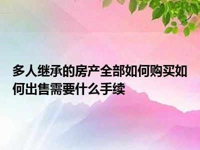 导读 目前大家应该是对房产继承分割如何买下全部产权多人继承的房产,怎样变卖,需要什么手续比较感兴趣的,所以今天好房网小编CC就来为大家整理