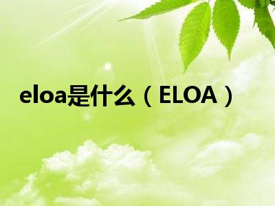 导读 目前是有很多朋友们对于ELOA这个信息比较感兴趣,那么小编也是收集了一些ELOA相关的信息来分享给大家,希望你会喜欢哦。