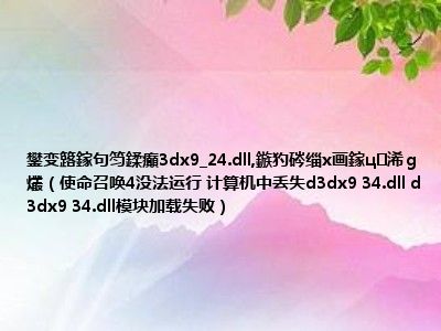 鐢变簬鎵句笉鍒癲3dx9_24.dll,鏃犳硶缁х画鎵ц浠g爜(使命召唤4没法运行 计算机中丢失d3dx9 34.dll d3dx9 34.dll模块加载失败)