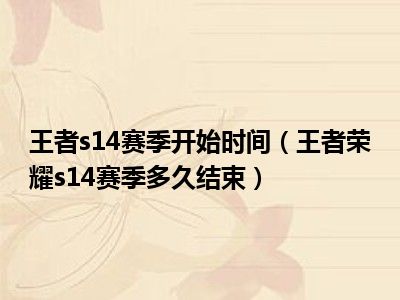 目前应该是有很多小伙伴对于王者荣耀s14赛季多久结束方面的信息比较感兴趣,现在小编就收集了一些与王者荣耀s14赛季多久结束相关的信息来
