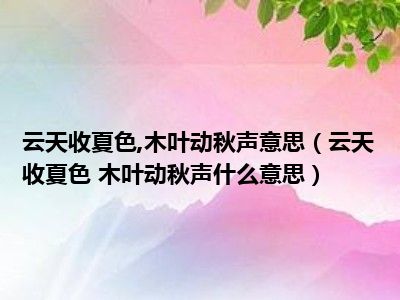 目前应该是有很多小伙伴对于云天收夏色 木叶动秋声什么意思方面的信息比较感兴趣,现在小编就收集了一些与云天收夏色 木叶动秋声什么意思相关的信息来分享给大家,感兴趣的小伙伴可以接着往下看,希望会帮助到你哦。