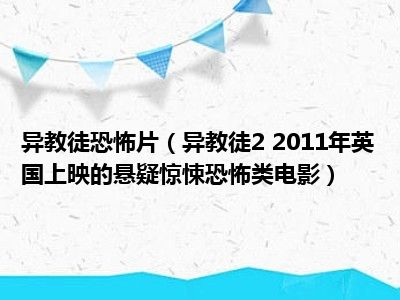 导读 目前是有很多朋友们对于异教徒2 2011年英国上映的悬疑惊悚恐怖类电影这个信息比较感兴趣,那么小编也是收集了一些异教徒2 2011年英国上映