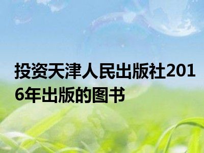 导读 目前是有很多朋友们对于投资美国 2016年天津人民出版社出版的图书这个信息比较感兴趣,那么小编也是收集了一些投资美国 2016年天津人民出