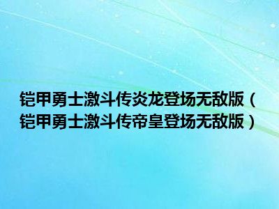 1、《铠甲勇士激斗传帝皇登场无敌版》是一款动作类小游戏,上市于2012年。