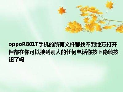 相信目前很多小伙伴对于oppoR801T手机所有文件找不到地方打开,但是都在。他人打电话什么的都可以接到,是不是按了隐藏键都比较感兴趣,那么小编今天在网上也是收集了一些与oppoR801T手机所有文件找不到地方打开,但是都在。他人打电话什么的都可以接到,是不是按了隐藏键相关的信息来分享给大家,希望能够帮助到大家哦。
