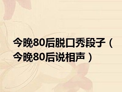 导读 目前是有很多朋友们对于今晚80后说相声这个信息比较感兴趣,那么小编也是收集了一些今晚80后说相声相关的信息来分享给大家,希望你会喜欢哦