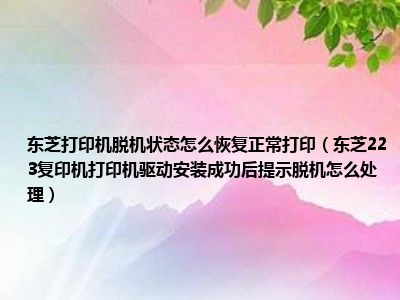 相信目前很多小伙伴对于东芝223复印机打印机驱动安装成功后提示脱机怎么处理都比较感兴趣,那么小编今天在网上也是收集了一些与东芝223复印机打印机驱动安装成功后提示脱机怎么处理相关的信息来分享给大家,希望能够帮助到大家哦。