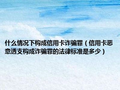 目前大家应该是对信用卡恶意透支构成诈骗罪的法律标准是多少比较感兴趣的,所以今天CC就来为大家整理了一些关于信用卡恶意透支构成诈骗罪的法律标准是多少方面的相关知识来分享给大家,希望大家会喜欢哦。