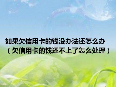 目前大家应该是对欠信用卡的钱还不上了怎么处理比较感兴趣的,所以今天CC就来为大家整理了一些关于欠信用卡的钱还不上了怎么处理方面的相关知识来分享给大家,希望大家会喜欢哦。