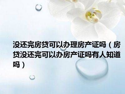 导读 目前大家应该是对房贷没还完可以办房产证吗有人知道吗比较感兴趣的,所以今天好房网小编CC就来为大家整理了一些关于房贷没还完可以办房产证