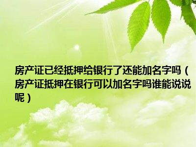 导读 目前大家应该是对房产证抵押在银行可以加名字吗谁能说说呢比较感兴趣的,所以今天好房网小编CC就来为大家整理了一些关于房产证抵押在银行可