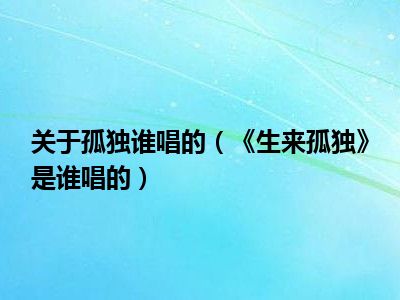 目前应该是有很多小伙伴对于《生来孤独》是谁唱的方面的信息比较感兴趣,现在小编就收集了一些与《生来孤独》是谁唱的相关的信息来分享给大家,感兴趣的小伙伴可以接着往下看,希望会帮助到你哦。